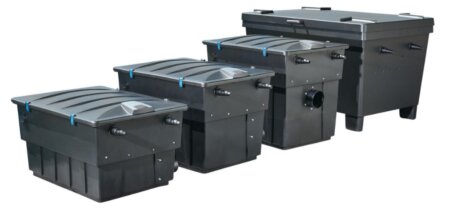 Hocheffektiver Durchlauffilter für Teiche bis zu 140 m3, der sehr wartungsarm ist, da die Grobschmutzabscheidung vor Eintritt in den Filter erfolgt und er lange Standzeiten hat: Der doppelt abgedichtete Motor sorgt für eine vielfach verlängerte Lebensdauer. Die justierbare Reinigungsautomatik bewirkt ein effizientes Abscheideergebnis. Ein Wasserverteiler ohne Engstellen verhindert Verstopfungen. Innovative Schmutzbarrieren verhindern das Auswaschen des Filters. Die Reinigung ist denkbar bequem: Das Filterband reinigt sich selbst, und die Filterschwämme werden direkt im Filter gesäubert.