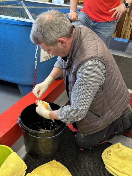 Schon seit Jahren führt Dr. Achim Bretzinger aus Lauingen fachtierarztliche Kontrollen unseres Fischbestandes durch. Bei neu importierten Koi werden Haut- und Kiemenabstriche mehreren Koi entnommen, diese Proben werden an das Tauros Diagnostik Labor geschickt, welche einen Koi Herpes Virus-Test durchführen. Ist dieser negativ und die Freigabe durch den Fischtierarzt erfolgt, werden die Fische erst nach Ablauf einer mindestens sechswöchigen Quarantäne zum Verkauf freigegeben.